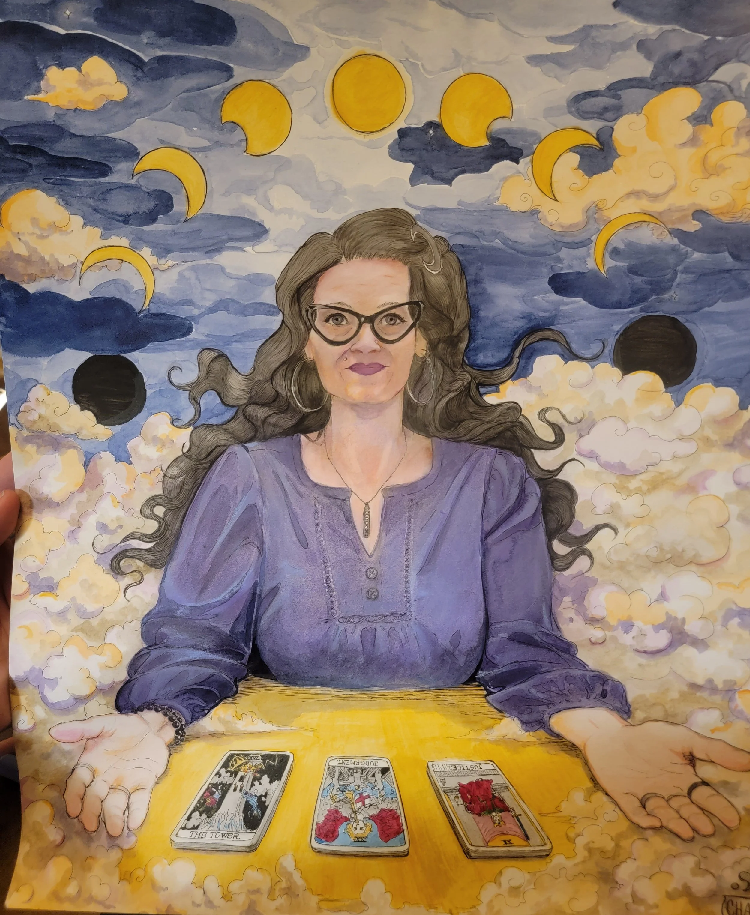 It’s not always digital! This piece is a lovely portrait for a great new friend of mine, Laura. She reads tarot and wanted a piece to use as a sort of heirloom, to pass on to her kids and family. I love the textures and fun we were able to put into this one. Thanks again, Laura!